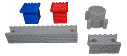 Two players work together to build a castle. Wall and tower pieces link to form courtyards. The player who finishes a courtyard claims it with a Keep.